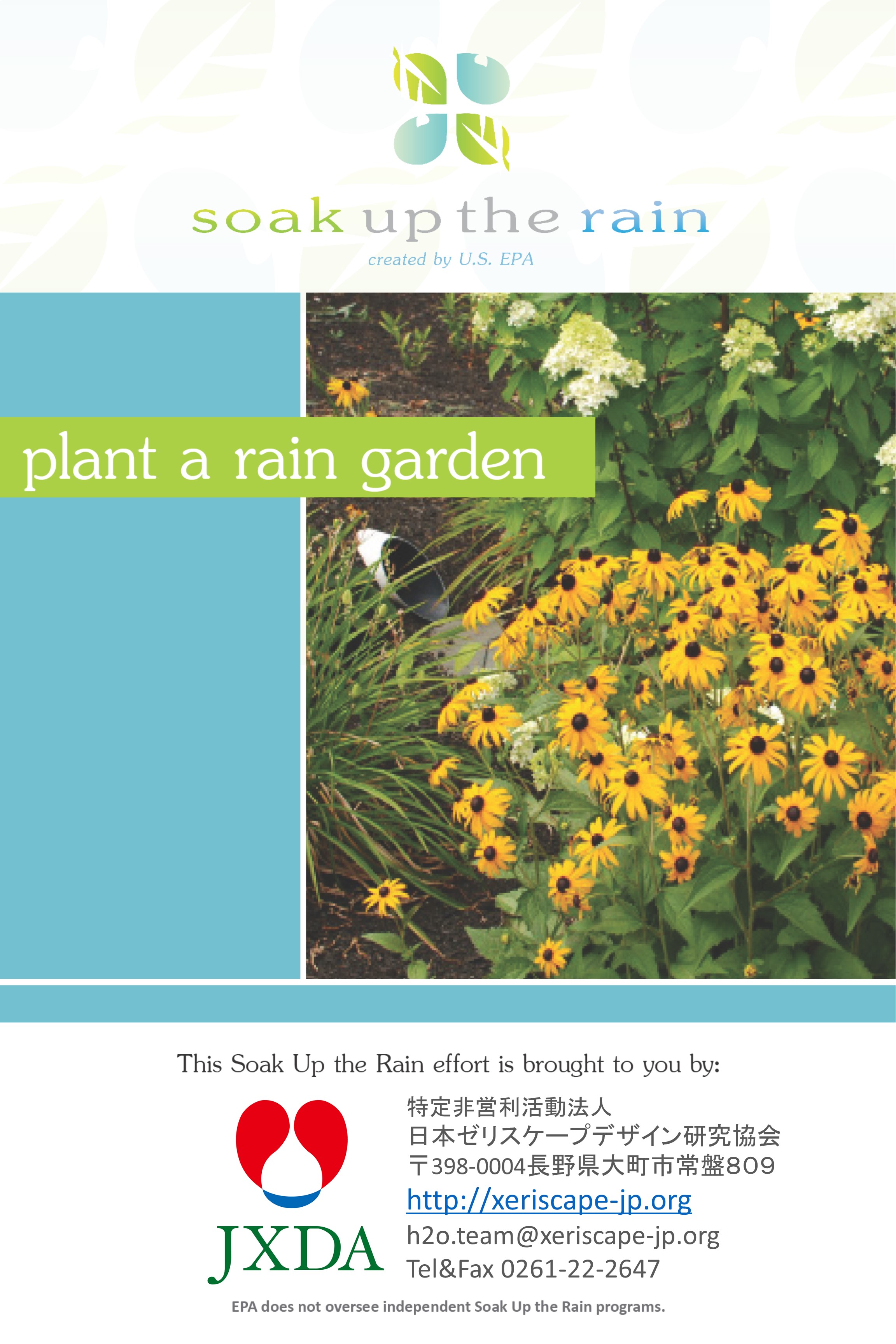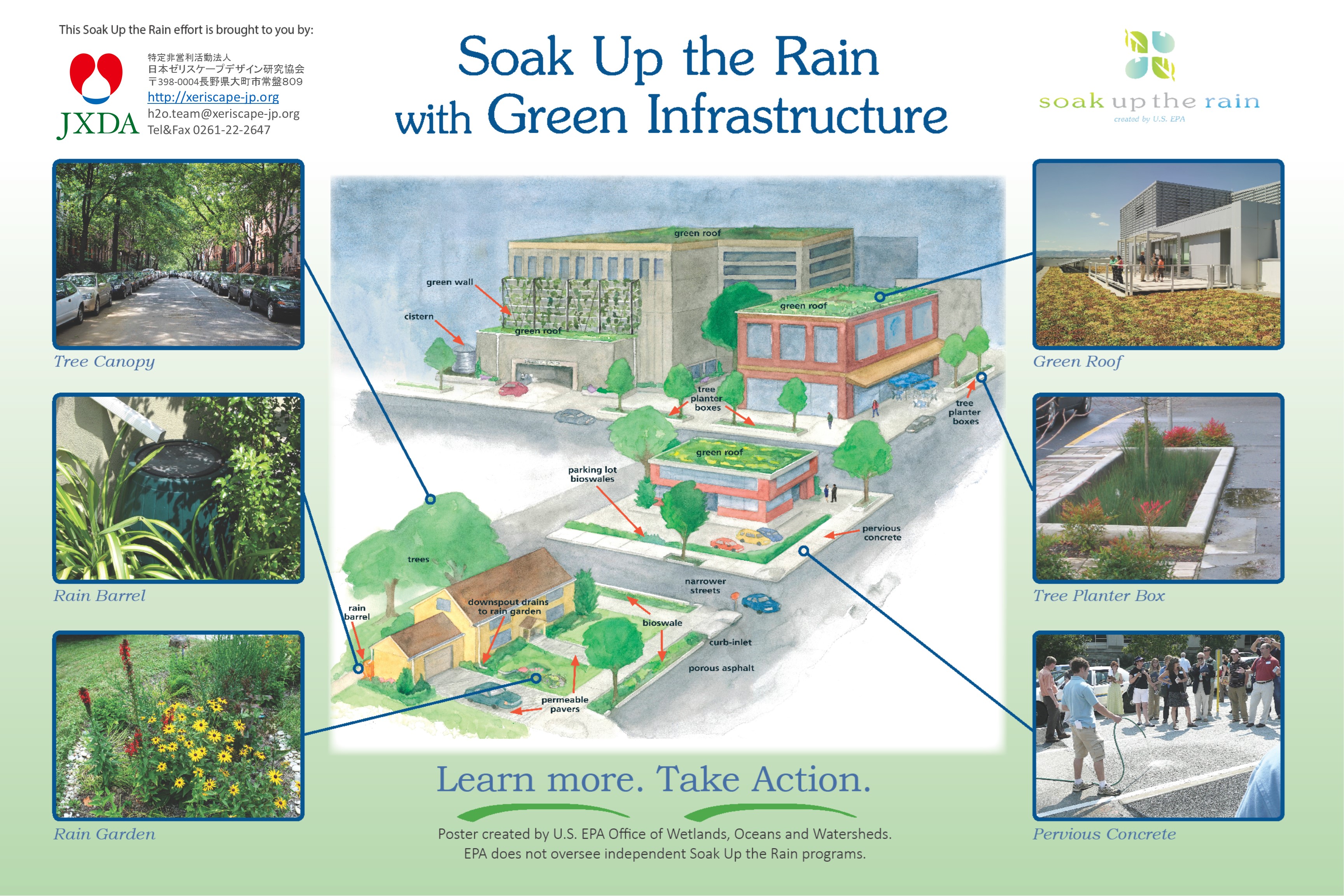 この“雨を吸収しよう”は、米国環境保護庁(EPA)によるキャンペーンです。それは、市民や自治体その他の人々に、汚染された雨水流出の問題についての意識を高めてもらうことで、雨水流出から生じる高価な影響を軽減するべく彼らの行動を奨励することを目的とした、雨水のための公共のアウトリーチキャンペーンなのです。