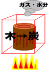 有機物に火を付けて燃やすと、後には粉末状のわすかな灰だけが残る。しかし、密閉して熱を加えると、酸素がないために、木から水分やガスが抜けて、黒い炭素の固形が残る。これが炭である。