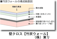 備長炭や竹炭を粉末状にして繊維に練り込んだもの。部屋全体を覆う面積の最も大きい壁に 炭を取り入れることで、直接の効果が得られやすいとされている。この他にも『炭しっくい』『炭畳』などもある。